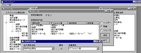 得意先固有のファイルと、各ユーザー固有のシステムに入力されるアプリケーションファイルを各項目ごとにユーザーが設定した定義に基づいて変換 |